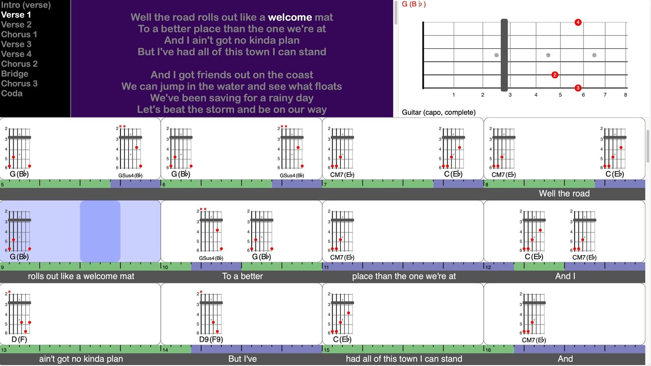 This video shows the guitar part in two slightly different ways – described in text at the beginning.